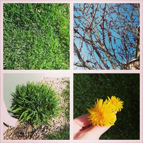 Green grass, buds on the trees, even dandelions! In MARCH!!!